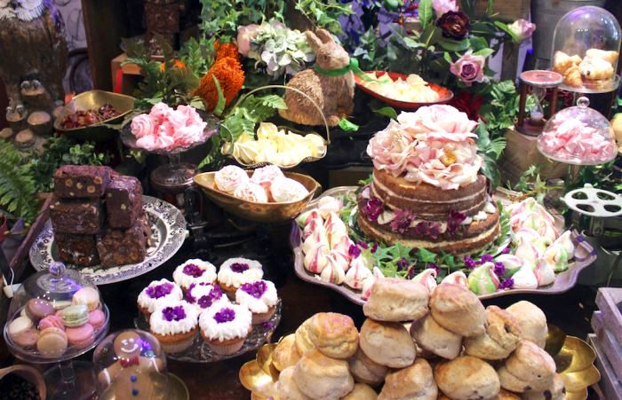 Comience con bocadillos con jamón Wilshire y chutney de granja, salmón ahumado y queso crema, pollo y apio de coronación, mayonesa de huevo y berro de mostaza. Luego podrá disfrutar de una deliciosa variedad de macarrones, pastel de chocolate Jaffa, torta de merengue y más. Vea el menú completo de té de la tarde aquí.