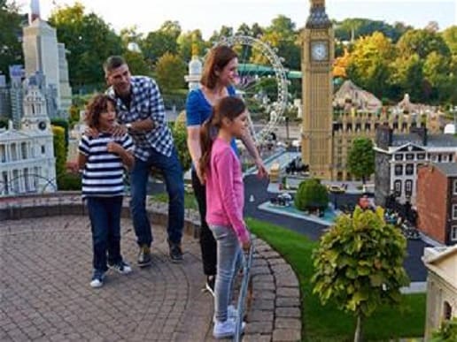 Recomendado sobre todo para niños de 3 a 9 años, este parque cuenta con atracciones suaves, figuras de lego de diferente tamaños por todos lados, área de toboganes y columpios, shows, zona acuática, (así que en verano podéis llevar el bañador) y una zona que está muy chula llamada Miniland, construcciones de casi todas las ciudades europeas y sus monumentos, y por supuesto ¡hechas de lego!