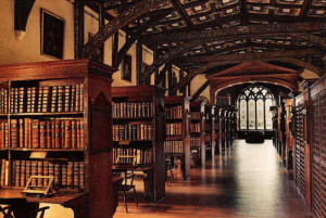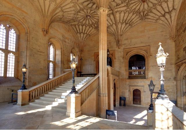 La biblioteca Bodleiana es el principal recinto de investigación de la Universidad de Oxford. Se usó en cuatro de las películas como enfermería de Hogwarts y también donde la profesora McGonnagal enseñó a los estudiantes a bailar.