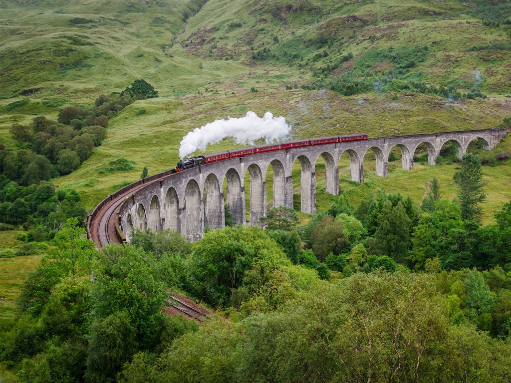 El viaducto de Glenfinan se encuentra en Escocia. El puente fue utilizado para las escenas del camino a Hoghwarts, la escuela de magia de Harry Potter ¡Lo mejor de todo es que podéis hacer el recorrido! La empresa West Coast Railways opera el tren Jacobite de vapor y su recorrido ha sido declarado por varias revistas como el recorrido más espectacular en tren del mundo, desde donde se pueden contemplar vistas increíbles.