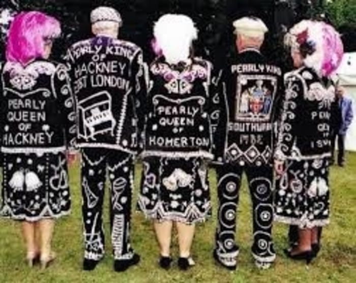 Los Pearly Kings and Queens es una organización benéfica fundada en el siglo XIX por Henry Croft, un huérfano que trabajó como barrendero en Londres, que decidió ayudar a los más necesitados inspirado por los lazos tan estrechos que unían a los comerciantes ambulantes de la época, quienes se cosían botones en sus ropas para poder reconocerse y ayudarse entre ellos.