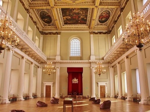 Lo más destacable del Banqueting House son las magníficas pinturas al óleo sobre lienzo de Peter Paul Rubens, uno de los artistas más influyentes e importantes de Europa, en el techo del Salón Principal..