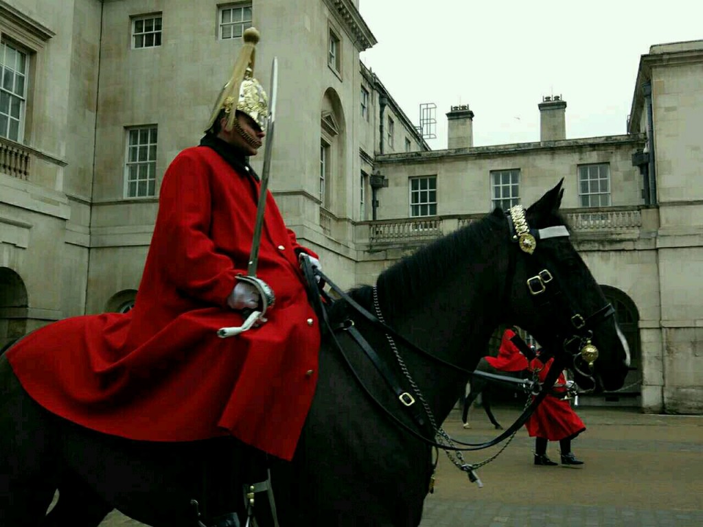 – Horse Guards Parade: cuando el parque se termine, verás enfrente una gran explanada de tierra, Horse Guards Parade, el lugar en el que se celebra a principios de junio el cumpleaños ceremonial de la reina. Si lo cruzas y te mentes bajo el arco del edificio de las Caballerizas Reales, llegarás a la calle Whitehall y verás a dos jinetes sobre sus caballos vigilando a ambos lados de la entrada. Puedes sacarte fotos con ellos.