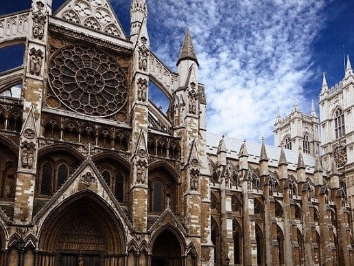 – Abadía de Westminster: sigue a la izquierda y, al girar en la esquina del ministerio del Tesoro, en lugar de eso, cruza la calle de enfrente y sigue recto. A escasos dos minutos se encuentra la abadía de Westminster, la catedral de los monarcas británicos.